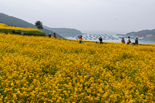 유채꽃으로 노랗게 물든 청산도 풍광이 눈길을 사로잡는다.