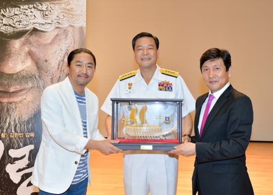 명량대첩을 영화화한 '명량'이 지난 22일 충남 계룡시 계룡대 대강당에서 해군 장병들을 위한 특별시사회를 개최했다. 이날 행사에는 황기철 해군 참모총장과 정태성 CJ E&M 영화사업부문장, 김한민 감독, 그리고 700명의 해군 장병들이 참석했다. 충무공 이순신 제독의 후예들인 해군 장병들에게 대한민국 해군으로서의 용기와 자긍심을 북돋아주기 위해 해군 측의 요청으로 기획된 행사였다. 영화 상영 내내 장병들은 이순신 장군이 탁월한 전략전술과 심리전을 바탕으로 열세를 극복하고 승리를 만들어가는 2시간여의 긴박한 과정을 함께 했다. 영화 상영이 끝나자 해군 자병들은 열화와 같은 박수와 함성으로 감동을 표현했다. 황기철 해군 참모총장은 " '명량'은 국민들에게 용기와 희망을 줄 수 있는 영화다. 이순신 제독의 이야기가 해군 장병과 그 가족들에게 깊은 의미로 다가갈 것을 기대한다. 국민들 기대에 부응하는 영화가 될 것 같다"고 전했다. 김한민 감독은 "이순신 장군의 위대함을 다시 한 번 느껴볼 수 있는 시간이 됐으면 한다"고 답했다. 한편 황기철 해군 참모총장은 이순신 제독의 위대함을 영화로 재조명한 것에 대한 감사의 뜻으로 해군 전 장병을 대표해 소형 거북선 모형을 김한민 감독에게 전달했다. '명량'은 12척의 배로 330척의 왜선을 물리친 명량대첩을 스크린에 옮긴 작품. 최민식, 류승룡, 조진웅, 김명곤, 진구, 이정현 등이 출연하며 오는 30일 개봉 예정이다.